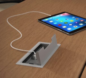 Mass cable riser for surface-to-floor cable management solution